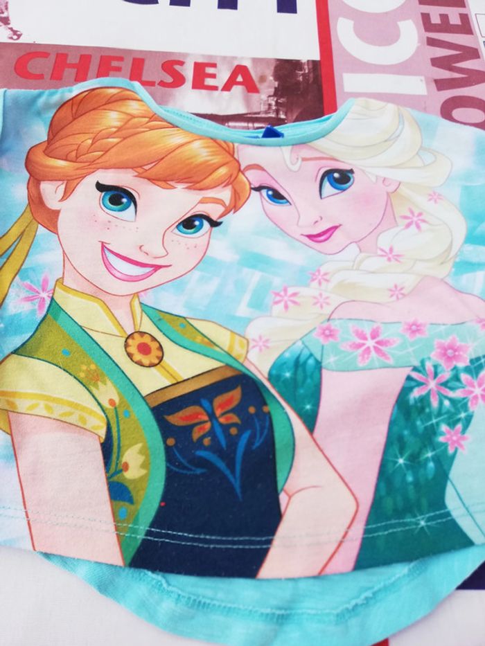 Débardeur crop top reine des neiges et short taille élastique sans marque. #ticia882ansfille #short2ans #teeshirtmanchecourte #debardeurreinedesneiges #tshirtmanchescourtes #annaetelsa #croptop #top #croctop