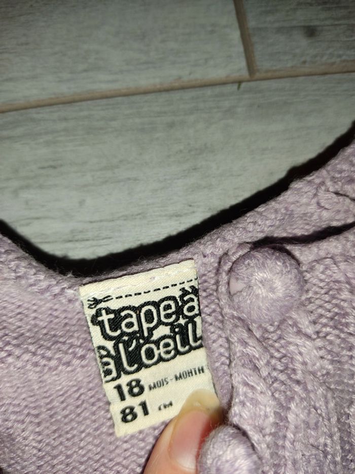 Gilet avec 3 boutons. Assez épais. #ticia8818moisfille #gilet18mois #gilettapealoeil #gilettao