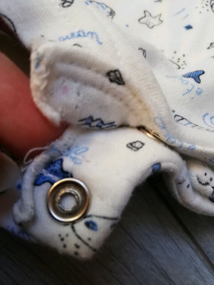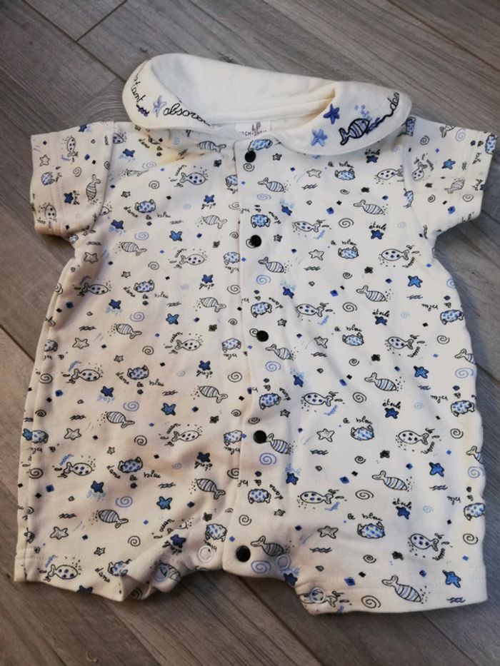 Barboteuse /pyjama d'été 3 mois. S'ouvre entièrement entre les jambes avec des pressions. Une pression cassée mais ne gêne pas. #ticia883moisfille #barboteuse3mois #pyjamafin #pyjamacoton #pyjamashort3mois #grenouillerecoton #grenouillèreabsorba #pyjamaabsorba