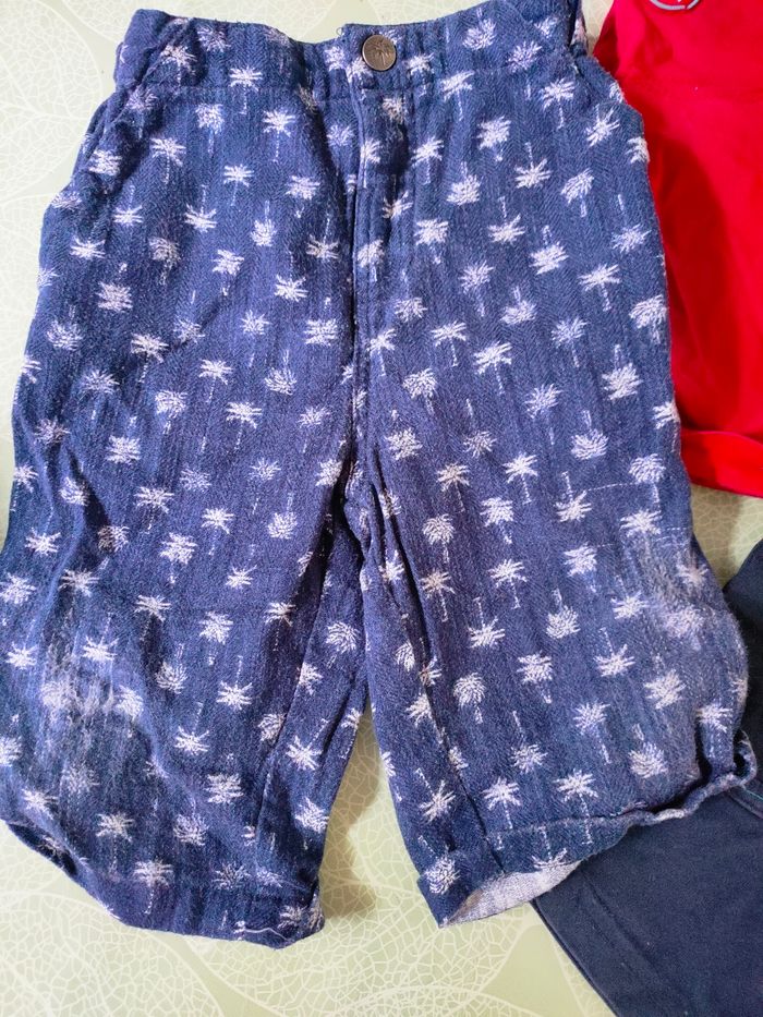 Marque orchestra 18 mois Le bleu à palmier est un peu usé aux genoux avec le 4 pattes Je ne repasse pas