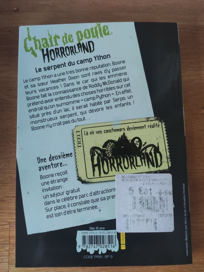 Chair de poule Horrorland - Le serpent du camp Ython - photo numéro 1