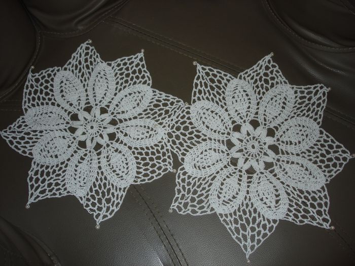 2 Ravissants Napperons crochetés et perlés en forme de fleur - photo numéro 1