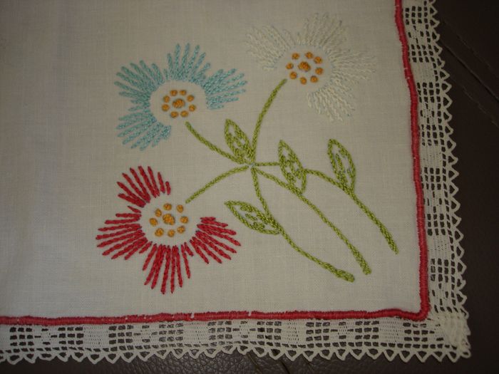 Joli petit Napperon rectangulaire Couleur: blanc cassé avec motifs brodés fleuris colorés Forme: Rectangulaire Dimensions: Longueur 28,5cm - Largeur 17cm Idéal pour compléter une collection ou se faire plaisir Napperon ancien en parfait état