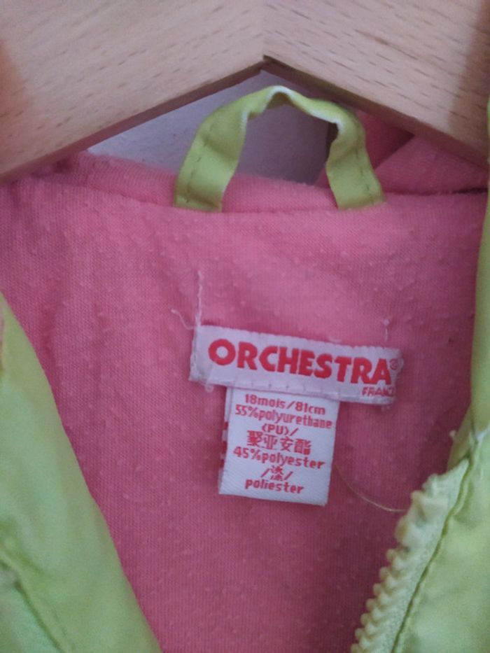 Veste imperméable "orchestra" . 18 mois. En bon état, porté mais sans tâches ni trous. Quelques bouloches à l'intérieur