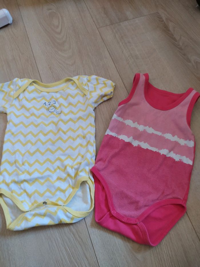 Lot de 2 bodies été, le rayé est en 24 mois et le rose est en 18 mois. Porté mais sans imperfections