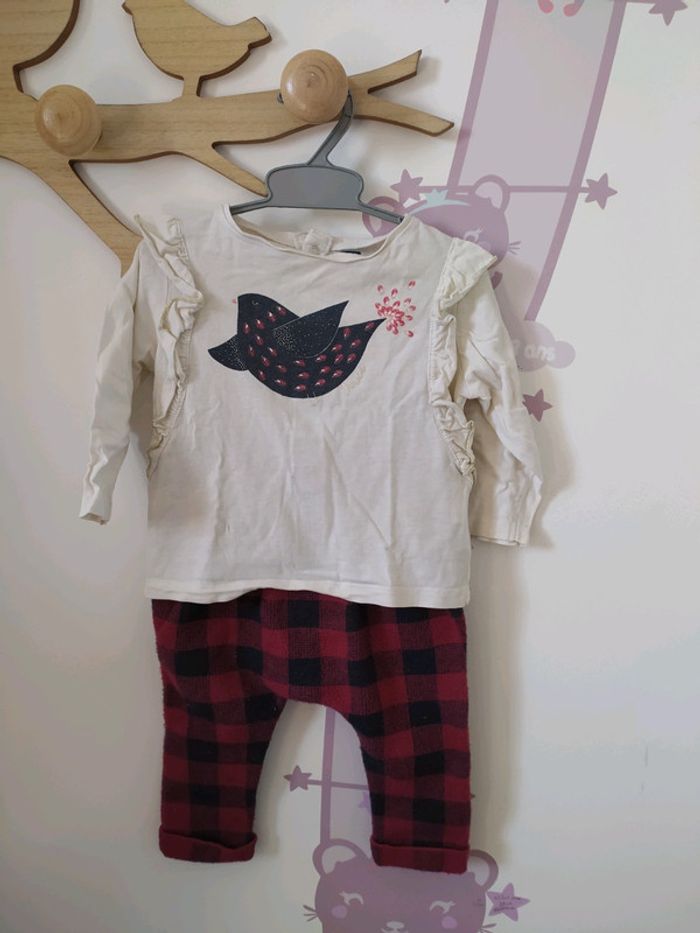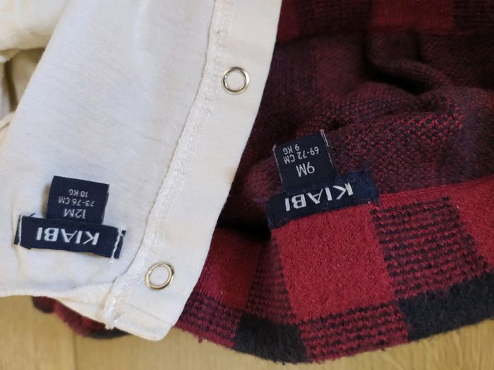 Ensemble hiver kiabi haut en 12mois et 9mois . Ensemble en très bon état, le dessin du haut a un peu passé au niveau du dessin