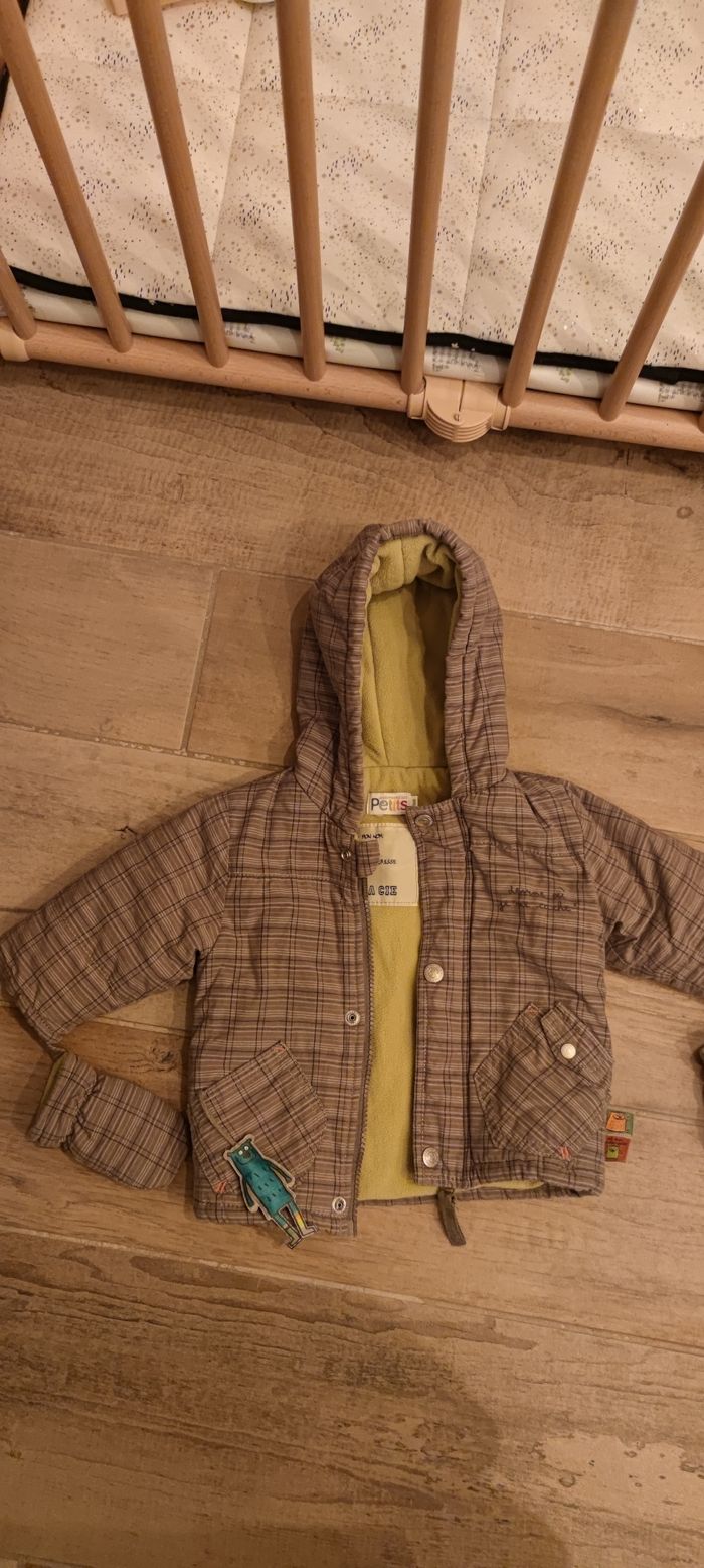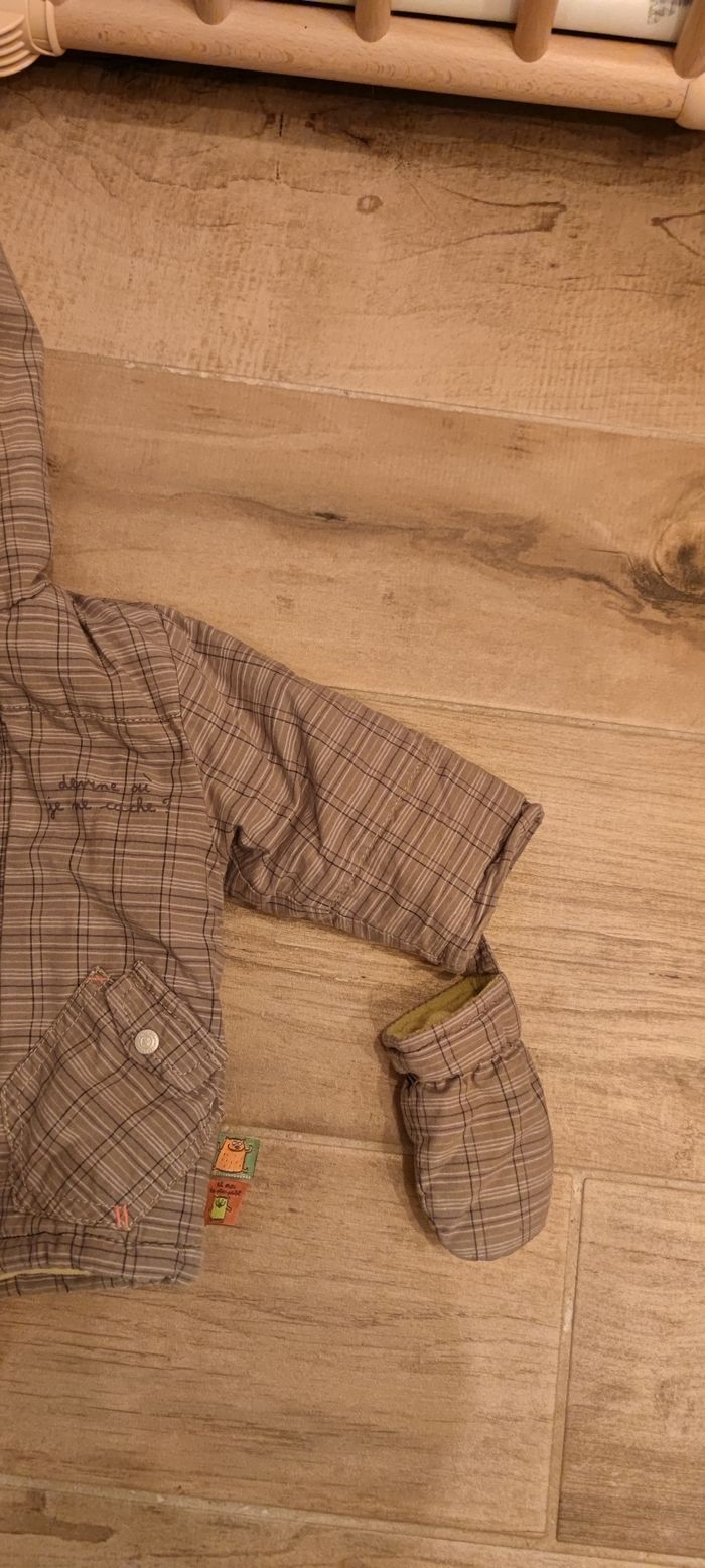 Manteau d'hiver très bon état, taille 3 mois. La compagnie des petits. Moufles pour les mains accrochées.