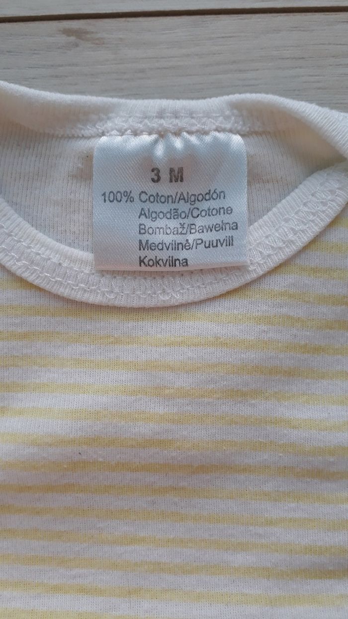 Bodie blanc a rayures jaune À manche courte Pressions entre les jambes Peux être mixte Taille 3 mois
