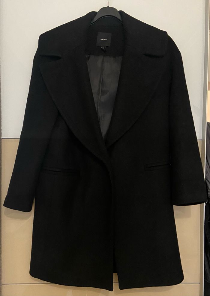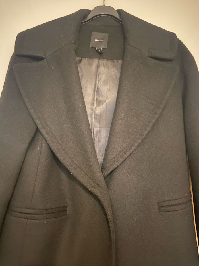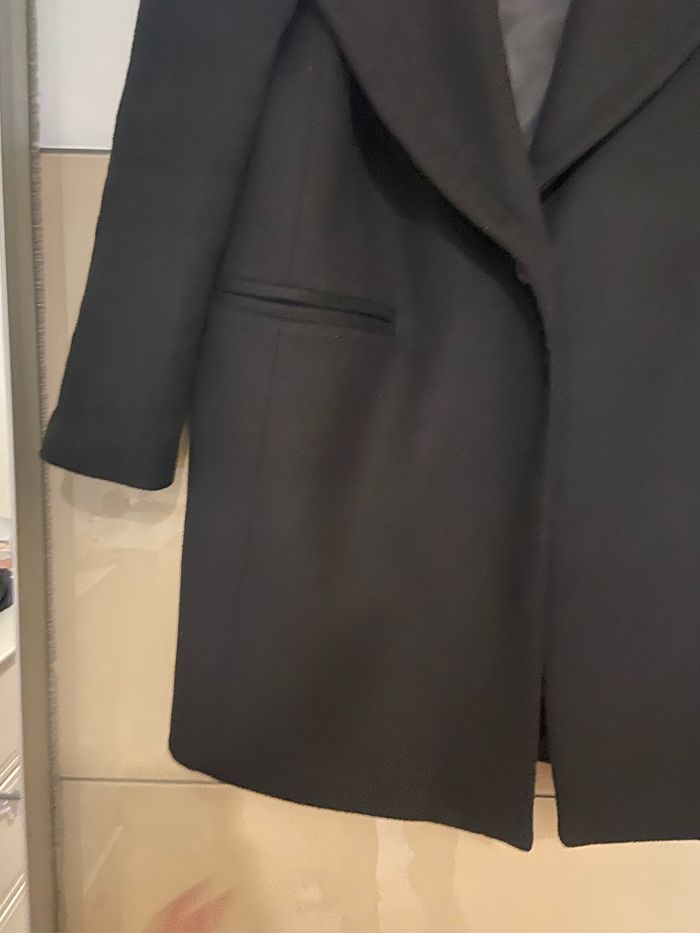 Manteau noir oversize L Taille petit Deux poches Matière extérieure 51% laine 32% polyester 17% rayon Matière intérieure 100% polyester