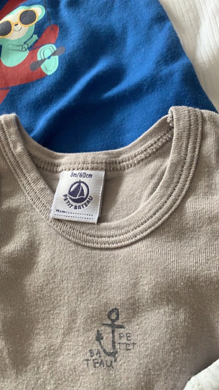 #3moisgarçon633 ➡️ body gris avec tête d’ours tape à l’œil ❌taché