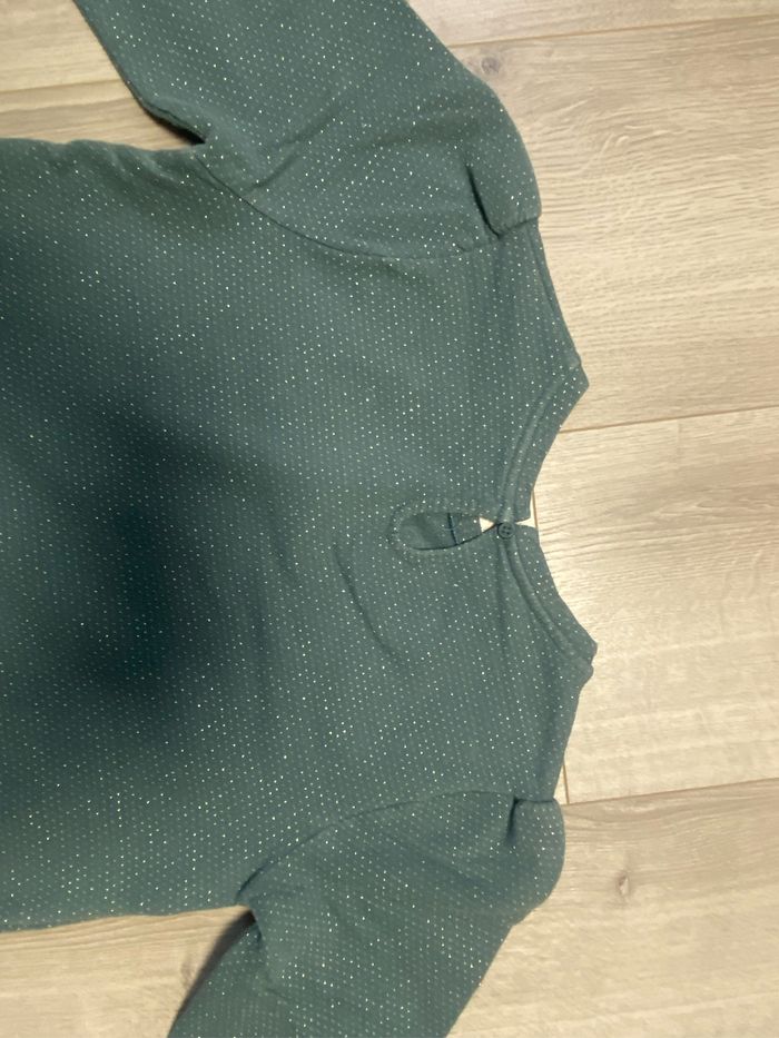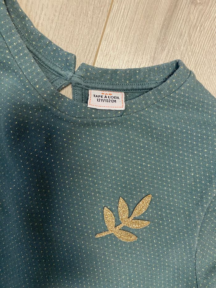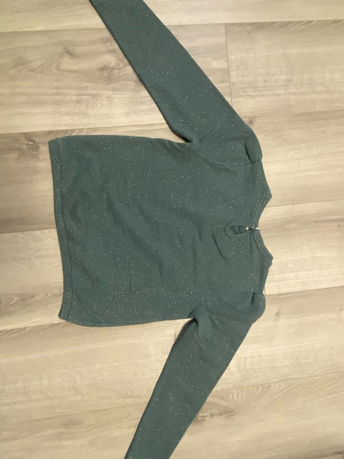 Très joli pull vert avec des pois doré Taille 12 an tres bon état Tape à l’œil