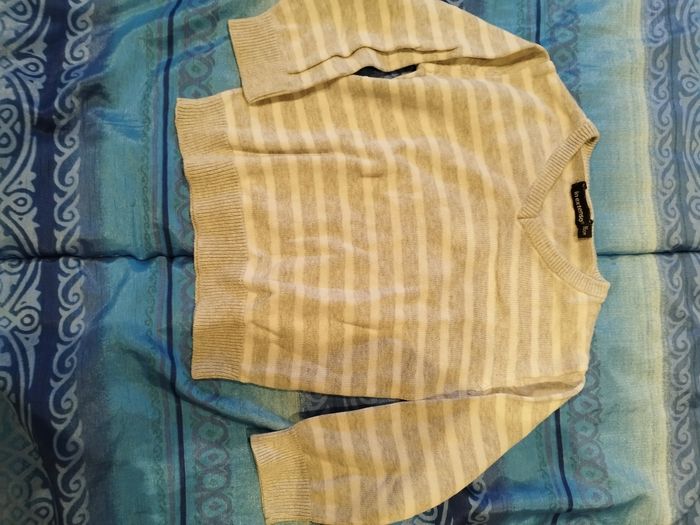Pull rayé blanc et gris 86 cm