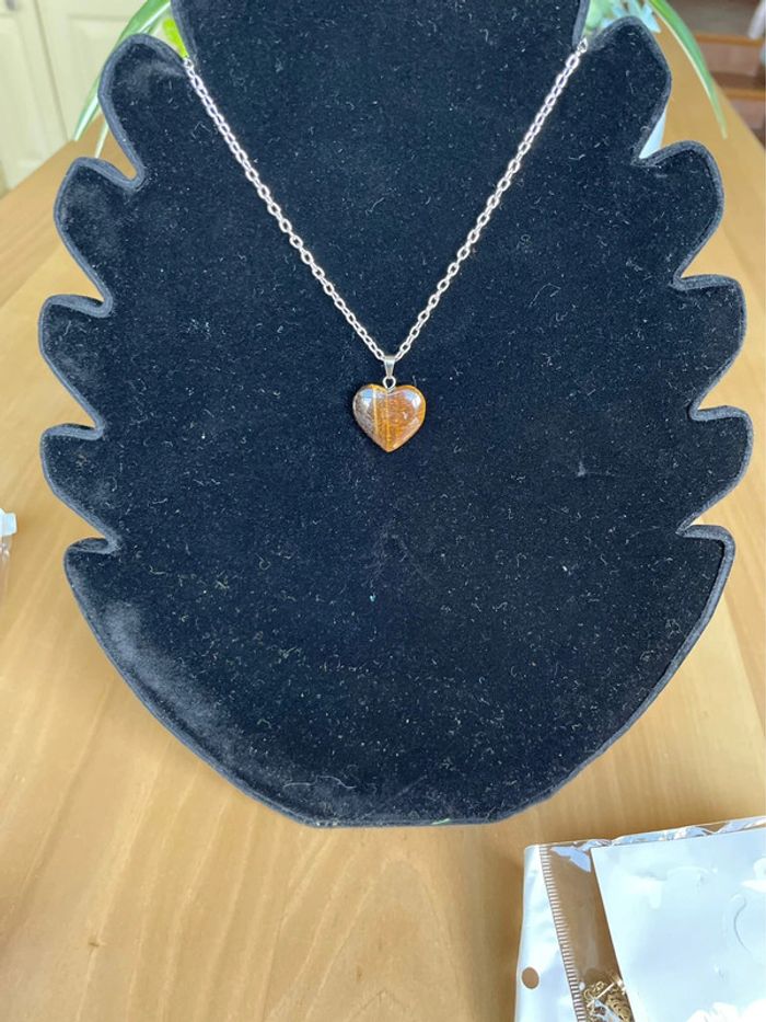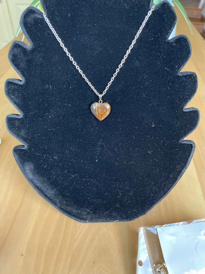 Collier coeur oeil de tigre / chaîne argentée - photo numéro 1