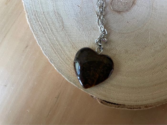 Collier coeur oeil de tigre / chaîne argentée - photo numéro 3
