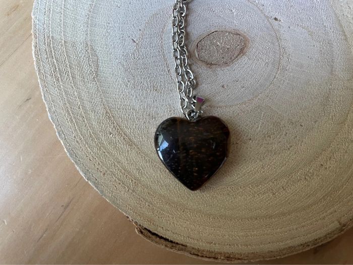 Collier coeur oeil de tigre / chaîne argentée - photo numéro 2