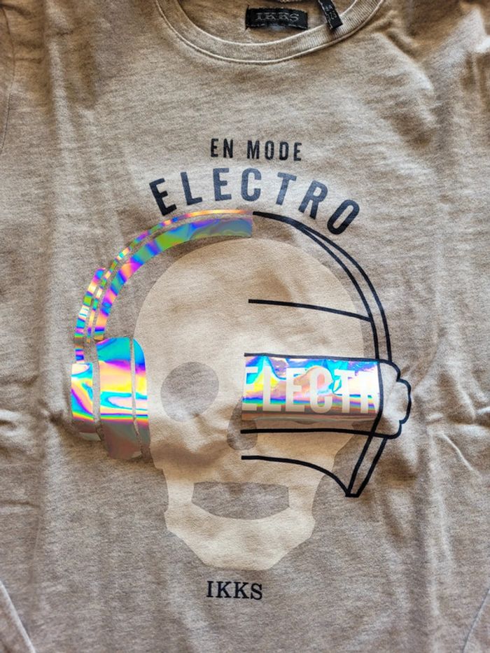 Tee-shirt manches longues de marque Ikks en taille 8 ans. Motif interactif Electro tête de mort. Excellent état, peu porté. Nombreux d'autres vêtements disponibles, n'hésitez pas à jeter un coup d'oeil à mon dressing ou servez vous du hashtag suivant sans filtres: #morgane3007garçon8ans