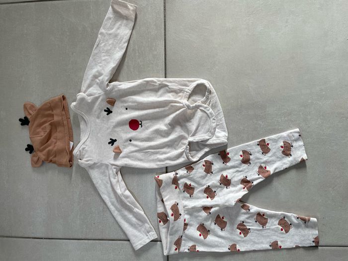 A vendre 🧸 ensemble cerf Noël h&m 9m : porté 1 fois 🧸 pantalon velours violet h&m 9m jamais porté 🧸jogging kiabi motif bambi :taille 12 mois mais taille petit ‼️ je le mets pour dépanner (n’augmente pas le prix du lot) 🧸 pantalon pyjama et bonnet h&m 9m ‼️ légèrement taché aux genoux je le mets pour dépanner (n’augmente pas le prix du lot) 🧸 chaussettes chaudes 🧸 tee shirt manche longue kiabi 9m en parfait etat #noel