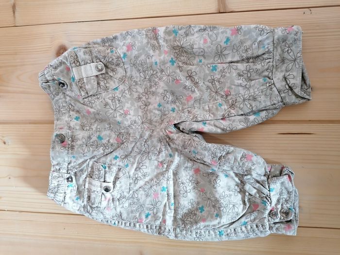 Joli pantalon Kitchoun 9mois motifs floraux avec de vraies petites poches. Léger mais entièrement doublé. Parfait état
