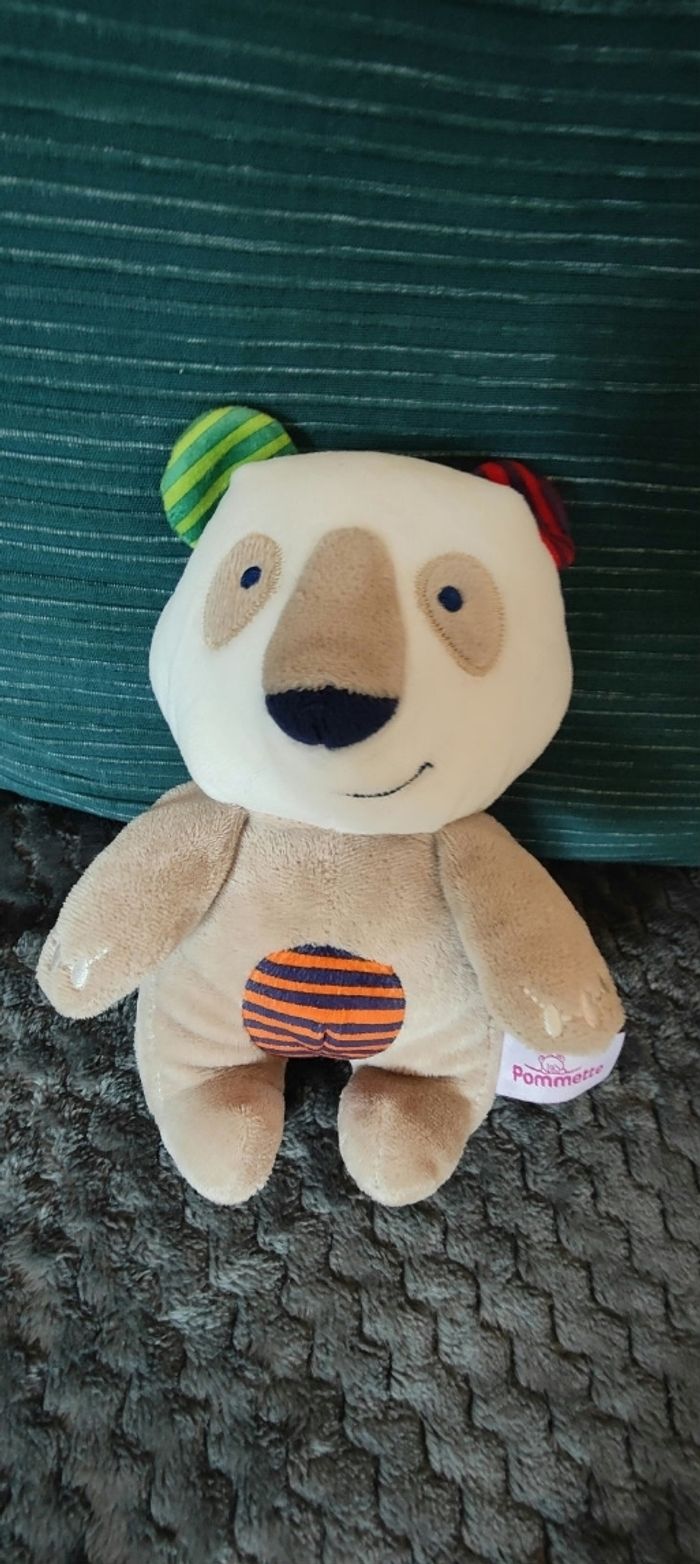 Beige avec rayures colorées oreilles et vente Pommette Intermarché Panda koala 9.90 euros Envoi en relais