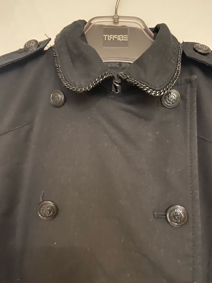 Trench noir Zara Intérieur matelassé Fantaisie chaîne au niveau du Col et épaules Ceinture Deux poches extérieures Extérieur Coton elasthane Intérieur Polyester Épaules 38 Cm Longueur 90 cm