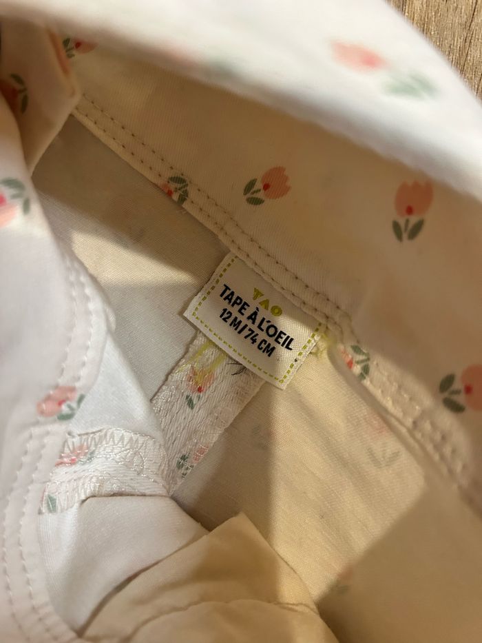 • robe en jeans à fleurs Rose pale Taille 12 mois Boutons pression sur les côtés et au bretelles (ajustables)