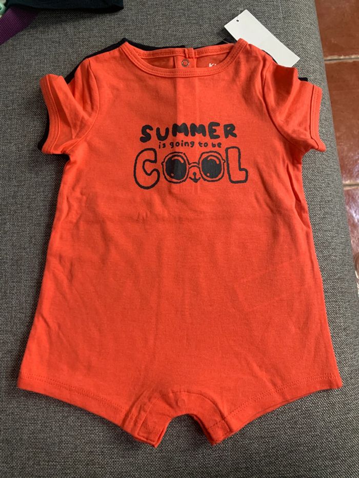 Lot de 2 barboteuses neuves avec étiquettes Kiabi pour bébé de 6 mois.