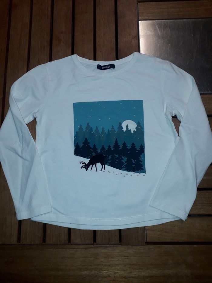 tee shirt ML TBE dessin en relief velours sur le devant : cerf noir
