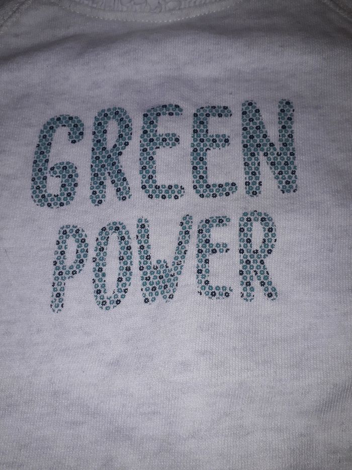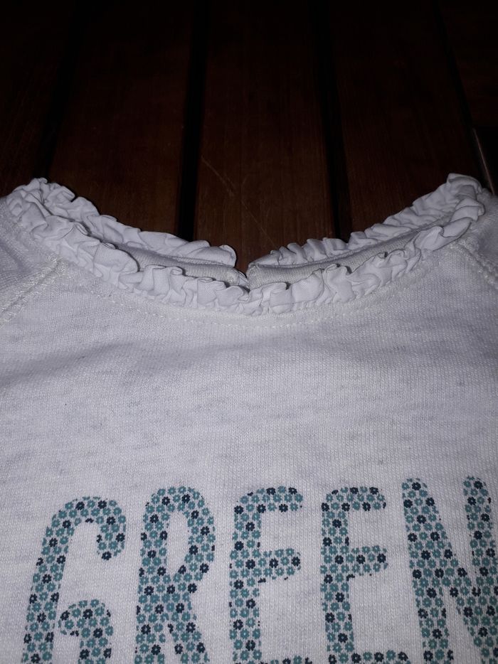 pull avec col et fausse chemise en bas TBE Ecriture vert céladon
