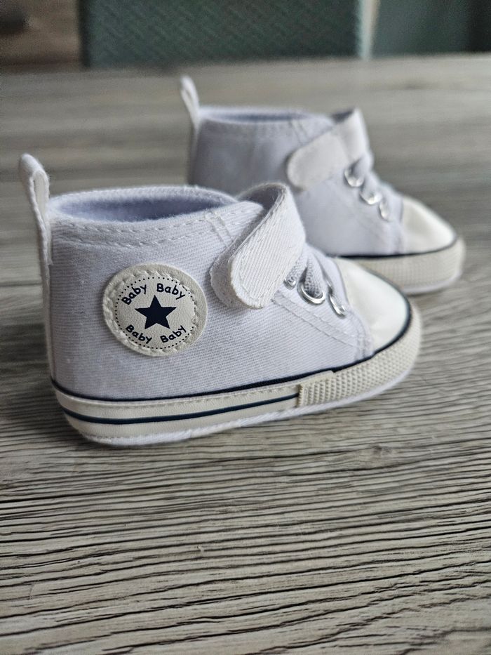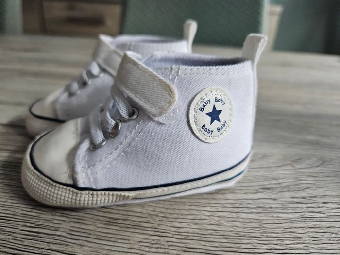 Basket blanche montante lacet élastique + scratch taille 3/6mois