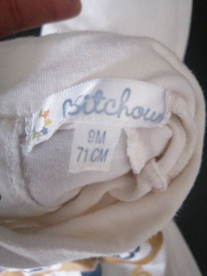 Col roulé blanc avec petit ours en impression et oreilles en dissocié fermeture par pression dans le dos Kiabi 9 mois Parfait état