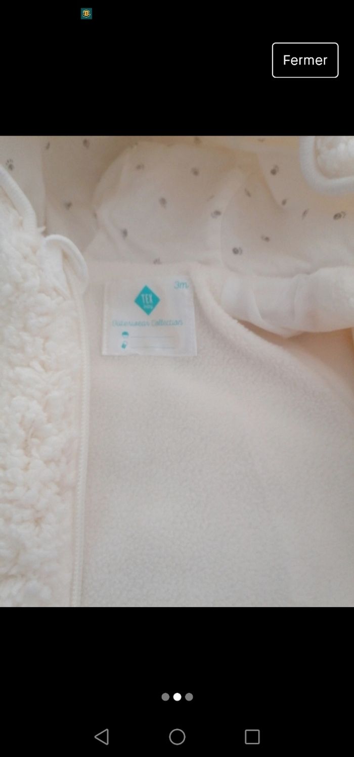 Combinaison taille 3 mois. Neuve, juste Lavée une fois. Super doux parfait pour l'hiver.