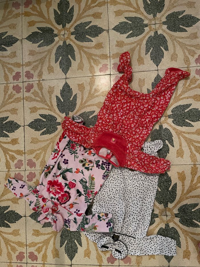 Lot de 3 grenouillère de marque catimini. La rouge est offerte car j’ai eu un problème avec la pression.