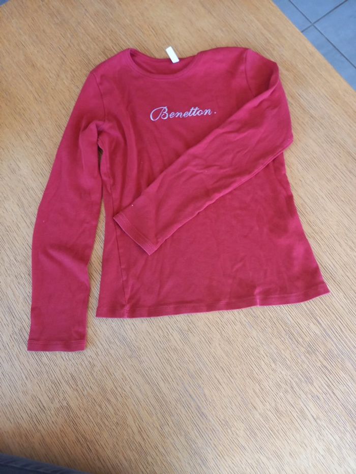 Tee shirt benetton manche longue rouge - photo numéro 1