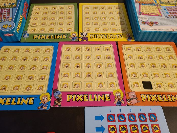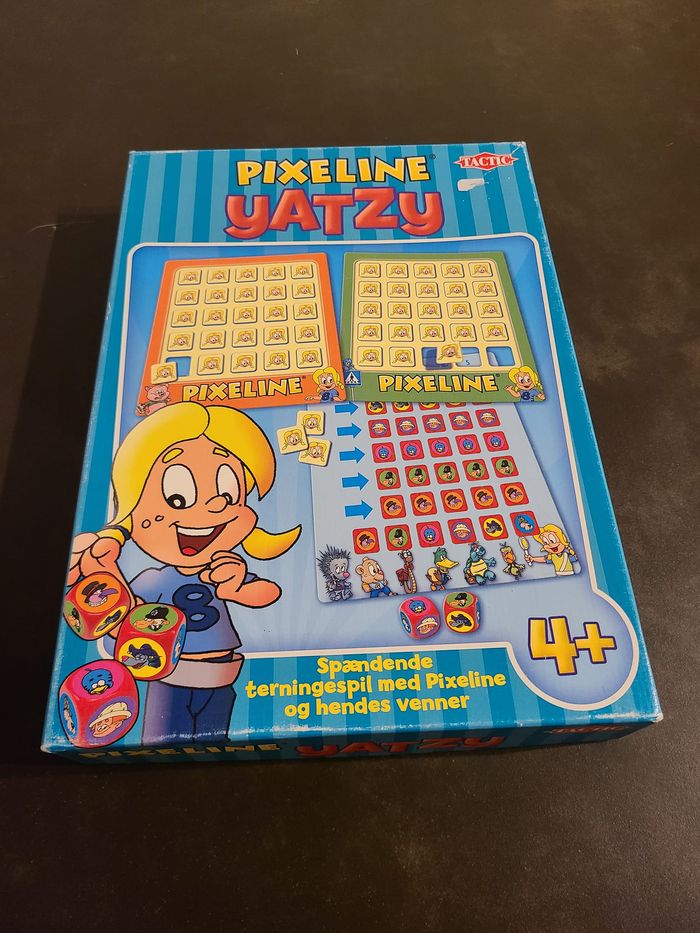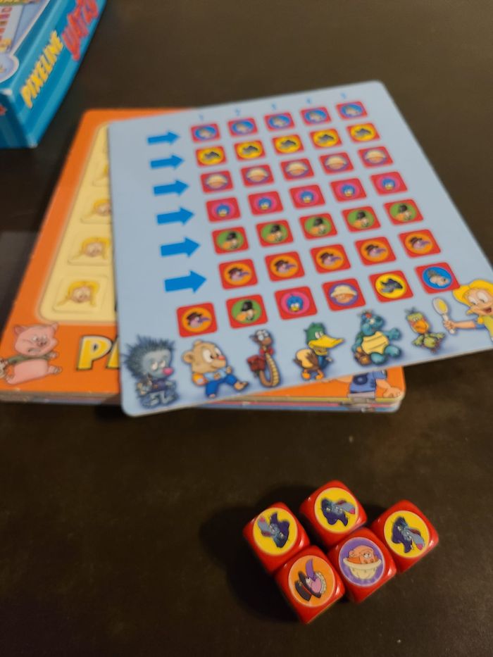 PIXELINE ENFANTS YATZY Un jeu Yatzy passionnant avec des figurines Pixeline. Il s'agit d'être le premier à remplir votre tableau d'images de tuiles Pixeline. Sur chaque cube, vous retrouverez Pixeline avec cinq de ses amis. Lancez les dés et essayez d’obtenir autant d’images similaires que possible. Vous avez jusqu'à trois lancers à chaque fois que c'est votre tour. Si vous obtenez trois formes différentes ou plus, vous gagnez des tuiles Pixeline pour votre tableau d'images. Si vous réalisez un "super lancer Pixeline" où tous les dés présentent des formes différentes, vous gagnez sept tuiles Pixeline !
