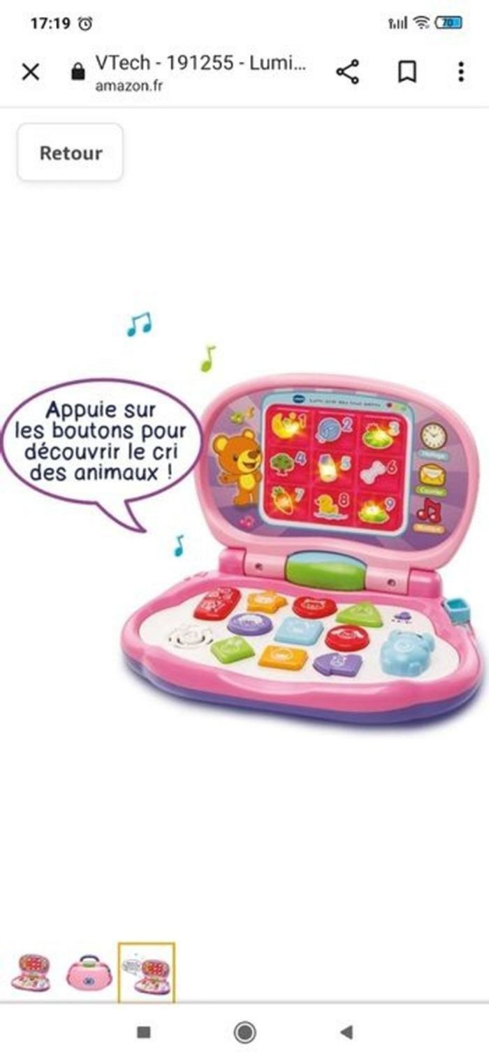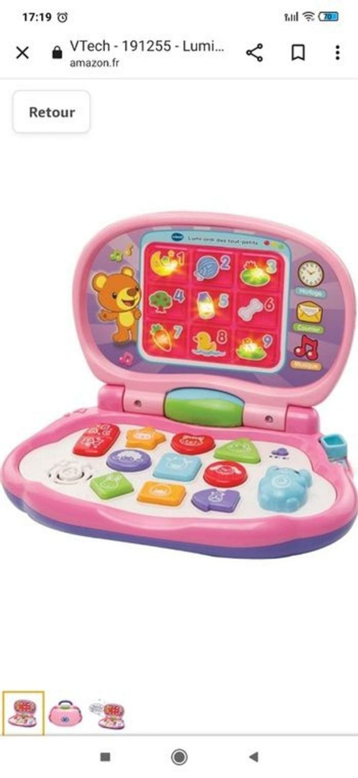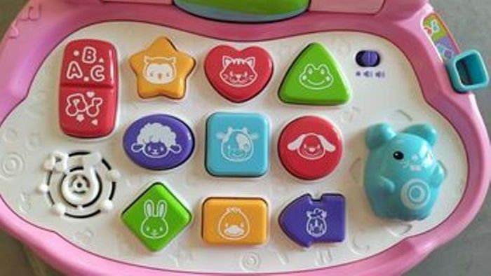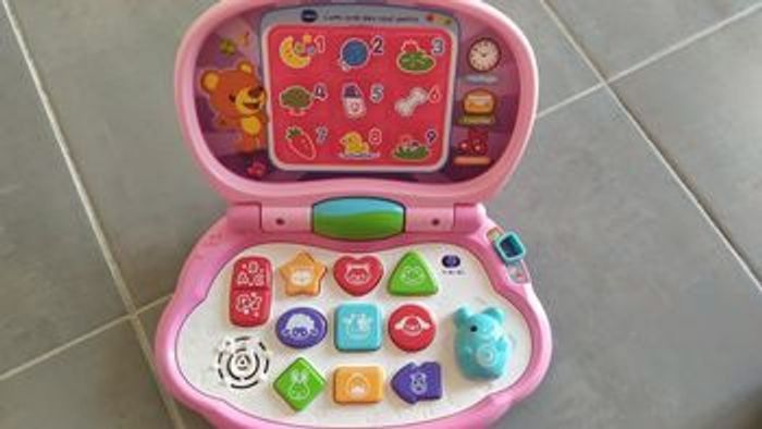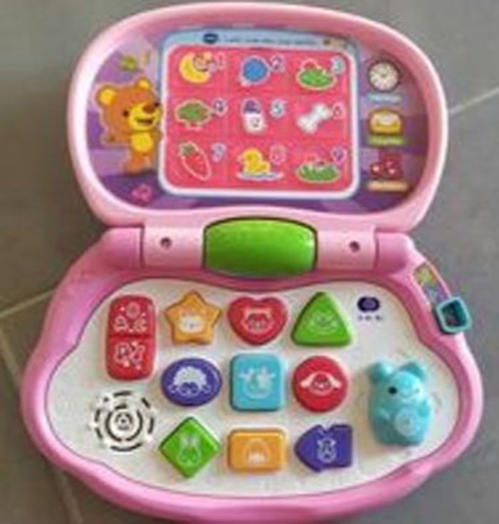 Le concept ? Un mini ordinateur tout coloré et ses 9 touches interactives qui permettent à l’enfant d’apprendre les animaux, les couleurs et les formes.