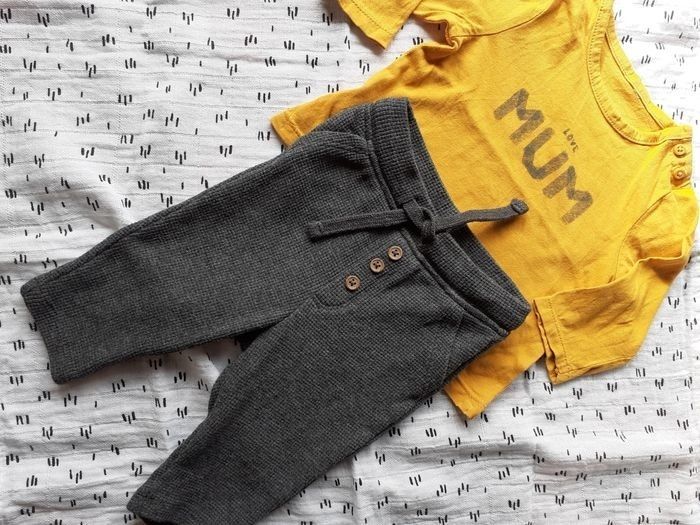 Ensemble en très bon état Pantalon marque kiabi 3 mois Tee shirt sans étiquette de marque taille 3 mois