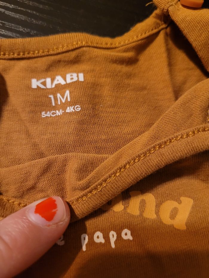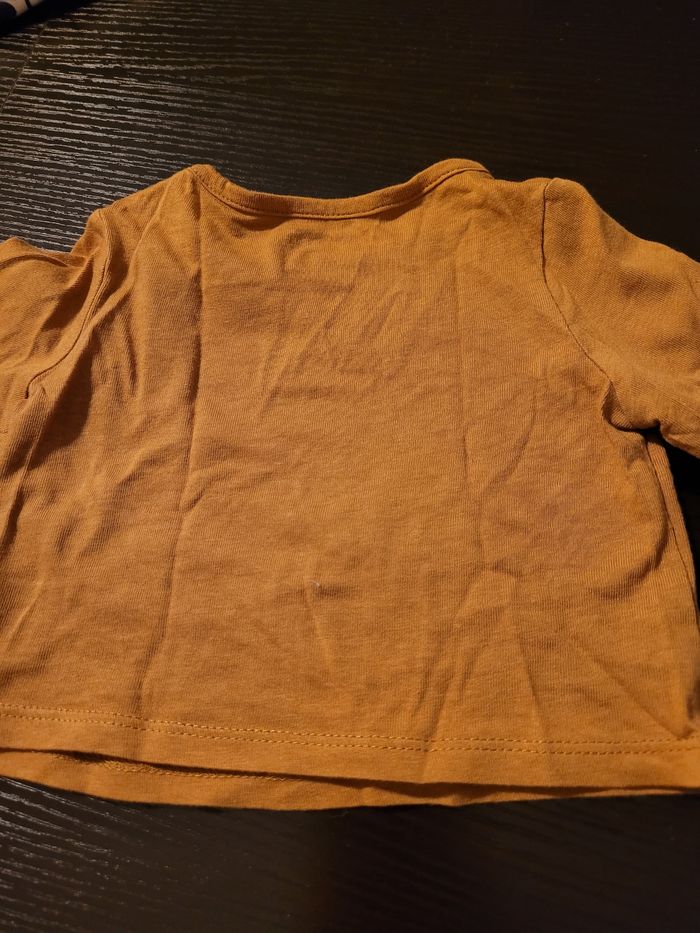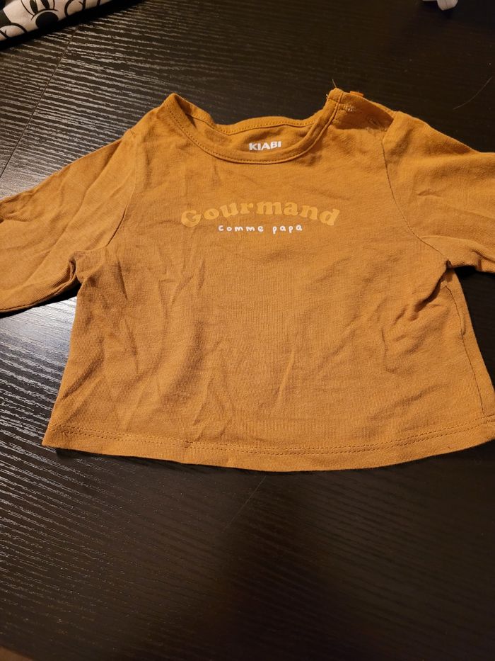 Tee-shirt manche longue taille 1 mois 54cm 4kg. Très bon état juste pas repasser.