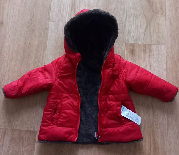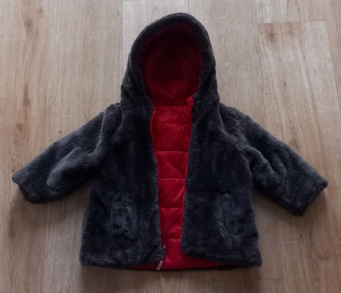 Je vend un petit manteau réversible pour fille de couleur rouge et noir.