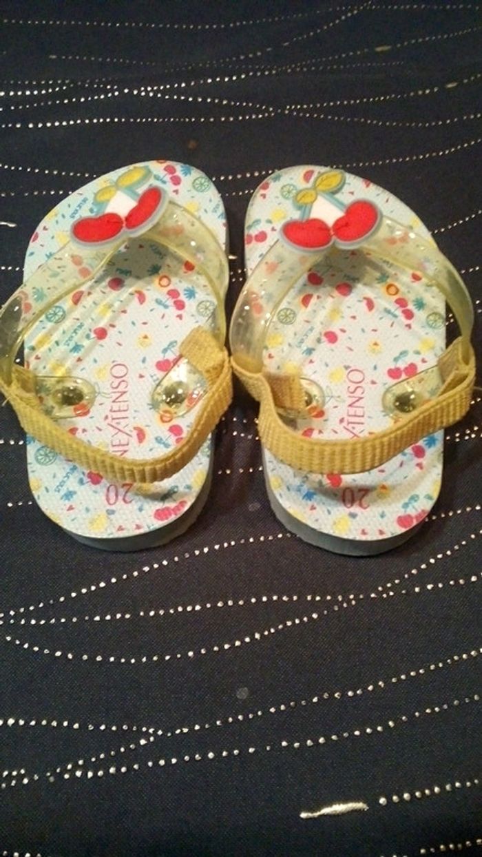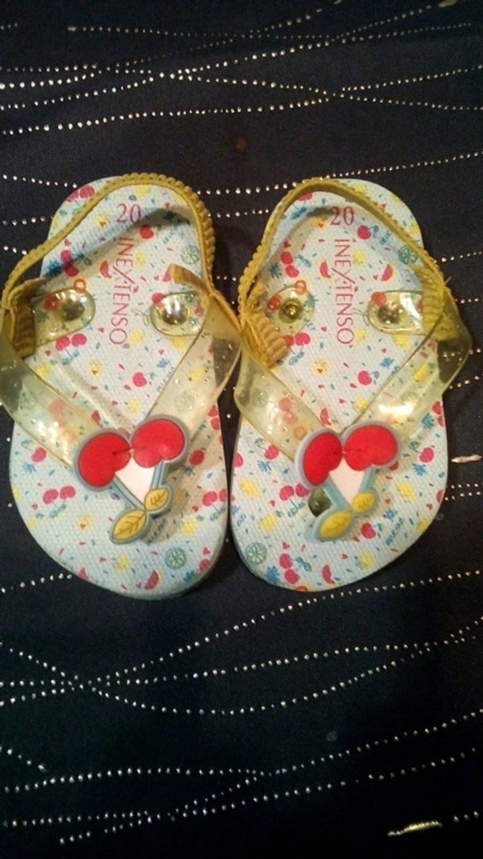 En très bon état. Juste un peu salies mais pas abîmées. Portées une ou deux fois, ma fille ne les supportaient pas... Élastique a l'arrière pour maintenir la cheville. Entre orteil. Plastique vert jaune pailleté. Taille 20. Marque In extenso (Auchan) #anaeeshoes