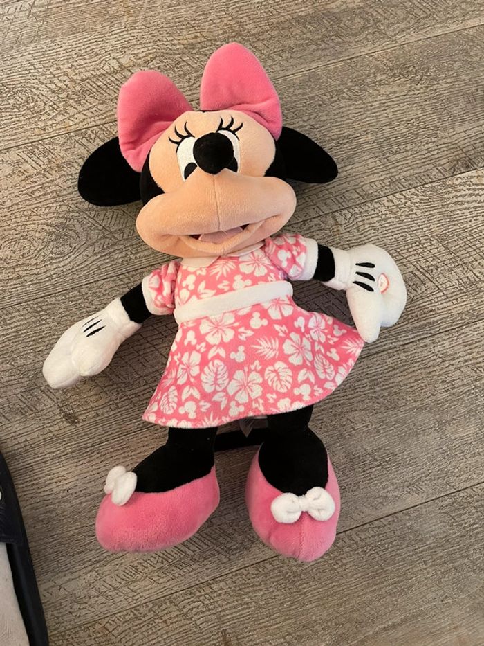Peluche Minnie, bruit et joue qui s’allume quand on appuie sur sa main .