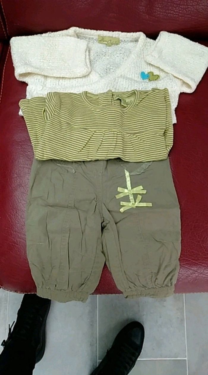 En Bon état gilet cache coeur t shirt rayé boutonnière dans le dos et pantalon taille élastique