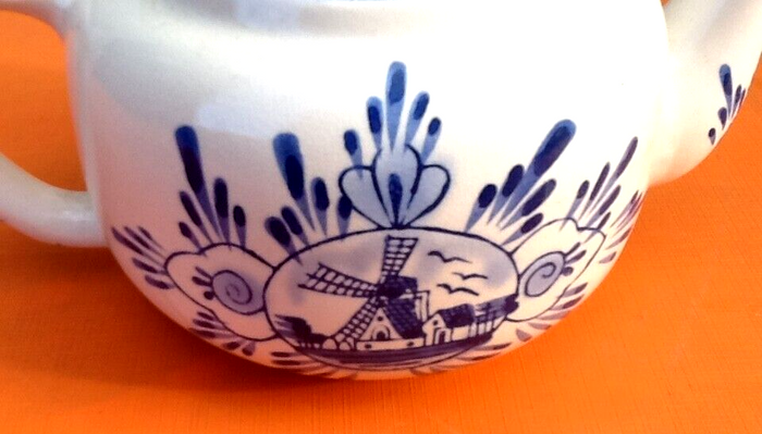 Théière ancienne Faïence Delft (Hollande) Décor Floral / Moulin à vent - photo numéro 6
