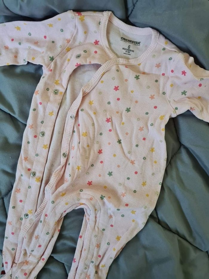 Pyjama lege a fleurs les 2 en lot 7 euros Taille 6 mois Marque orchestra En tres bon état le blanc neuf jamais mie me rose mie 3 fois
