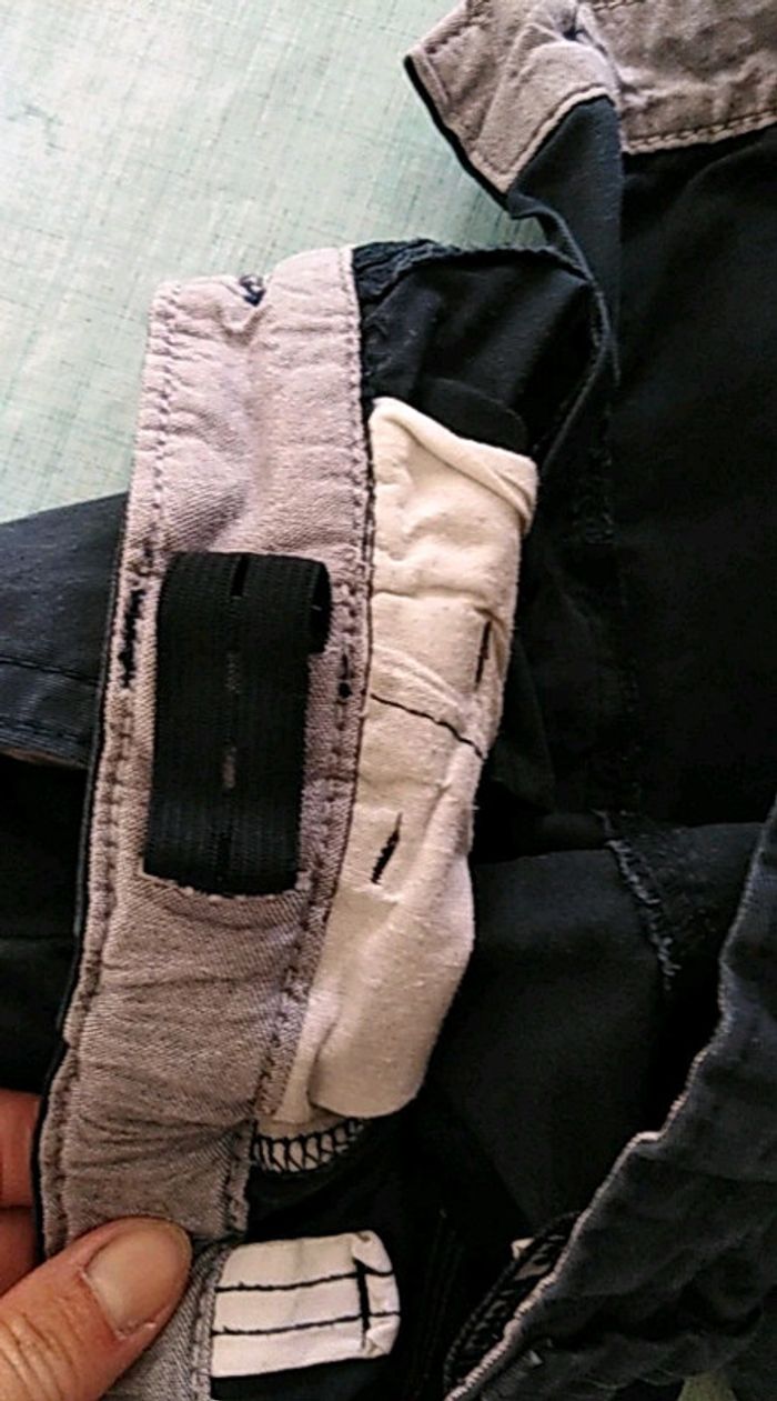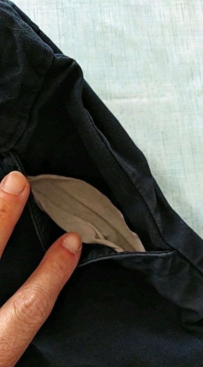 2 poches sur le côté avec taille réglable (photo) Bleu marine légèrement passé En lot c'est moins cher sur mon vinted, alors fouiller un peu......
