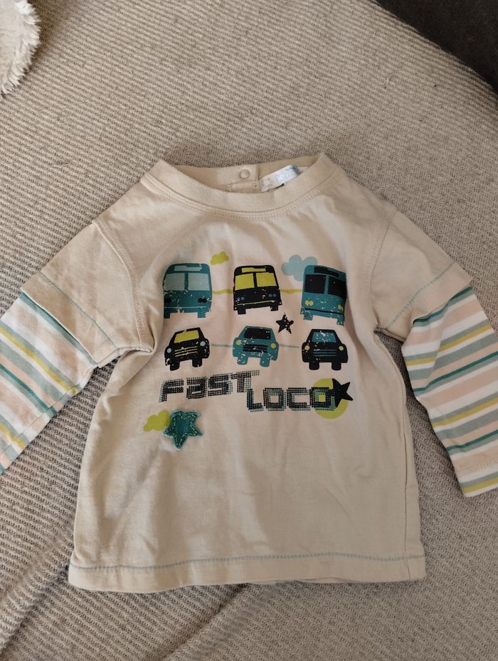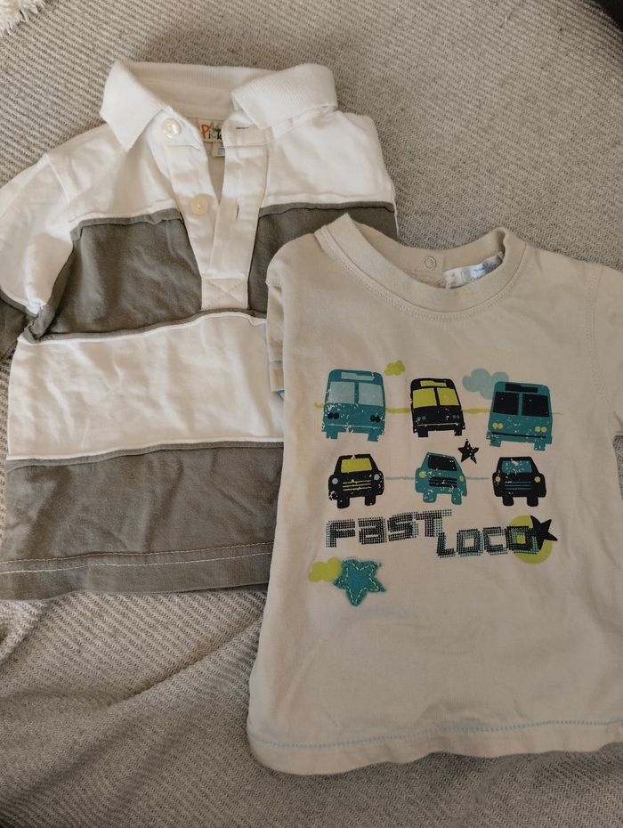 Lot 2 t shirts manches longues, taille 3 mois. Marques : Kitchoun et Pick Ouic. Très bon état.