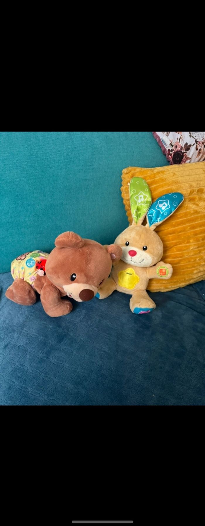 Bonne état lot de 2 peluches interactives [ le lapin à remettre des piles ]