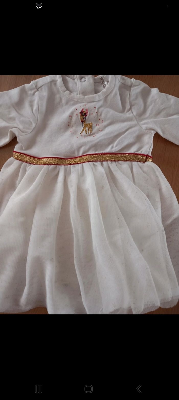 Vend robe de fêtes noel avec bodie intégrer en très bon état. Taille 3 mois