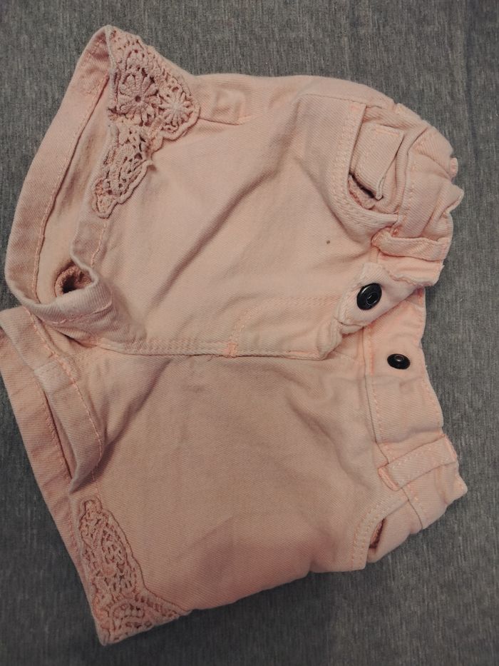 Jean couleur corail Dentelle sur les côtés des cuisses, un peu ternies à cause du frottement Taille réglable