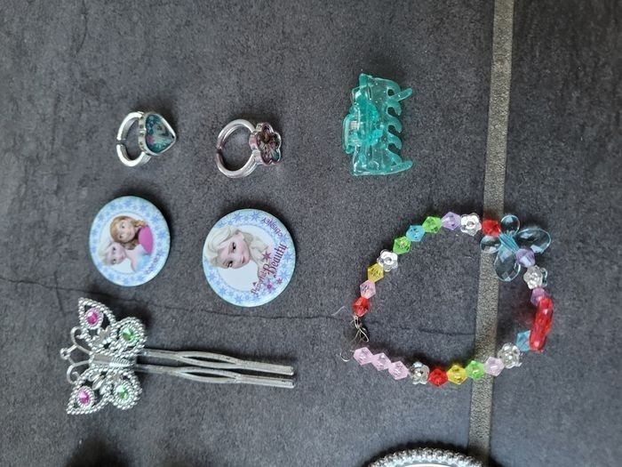 Lot de bijoux et accessoires pour cheveux Lot comprenant tout ce qu il y a en photos ( colliers, baguette magique, bracelets, barrettes,...) Ideal pour calendrier de l avent ou pour faire plaisir...