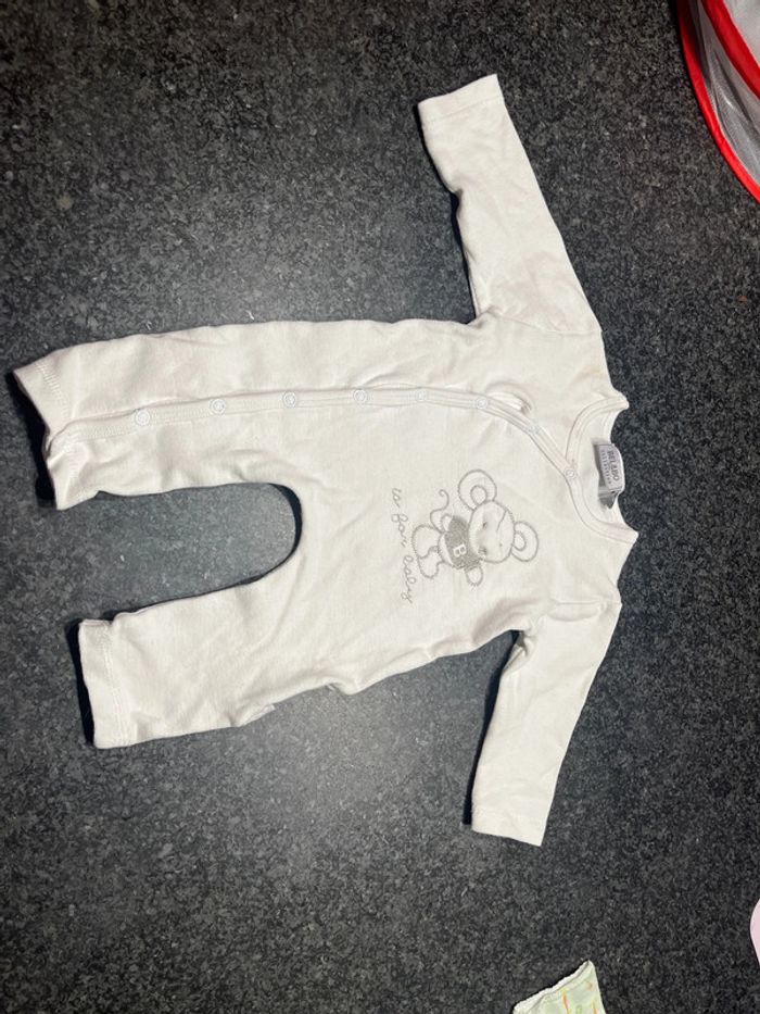 Lot de 2 grenouillères, l’une avec manches longues et l’autre manches courtes. La blanche a quelques petites taches. Beaucoup portées. ⚠️ je peux les ajouter à un colis de plusieurs articles GRATUITEMENT!